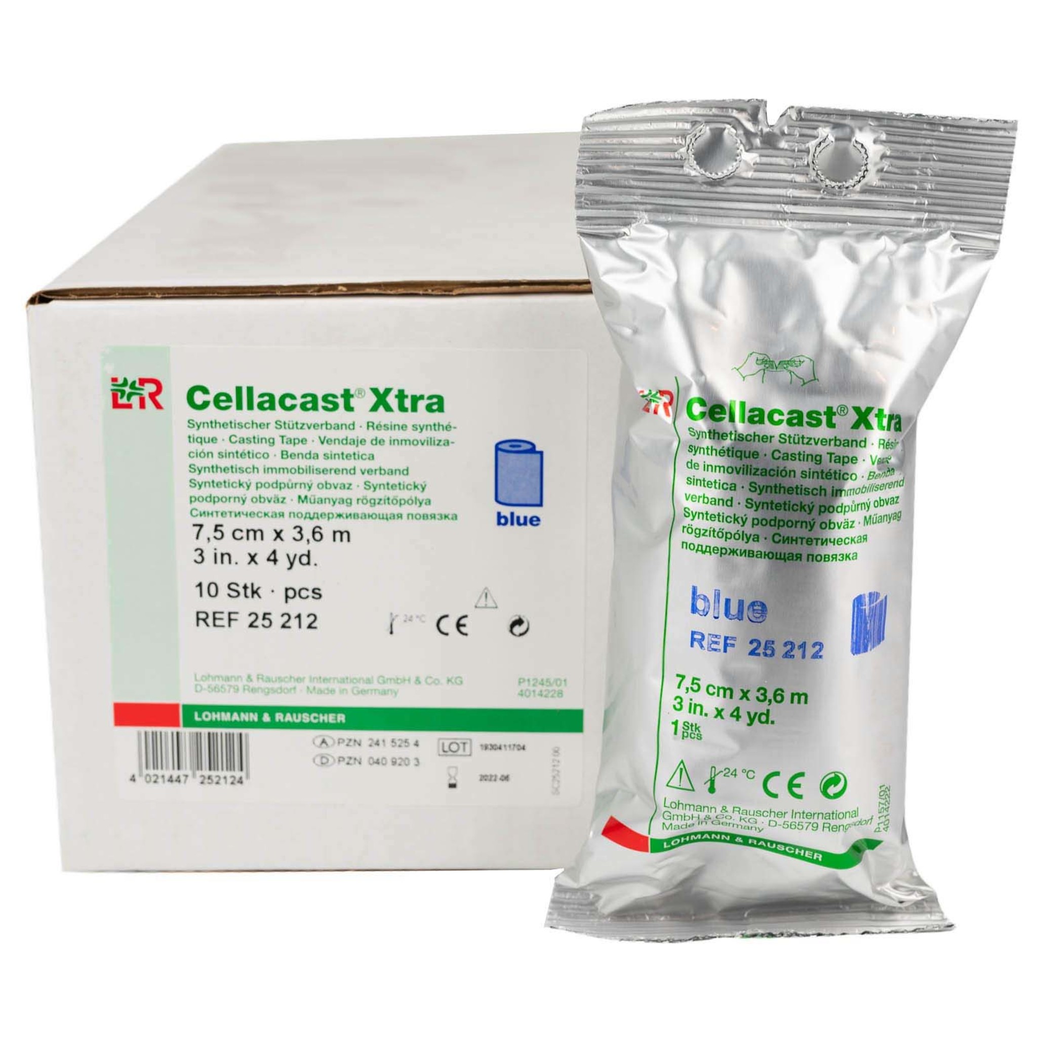 Cellacast® Xtra Casting Tape contains a rigid fiberglass carrier. It is extremely stable and strong, has a low-tack resin for easy handling, and excellent lamination. This product conforms to all body contours while featuring a smooth inside finish on a negative circumferential impression. No special gloves are required.