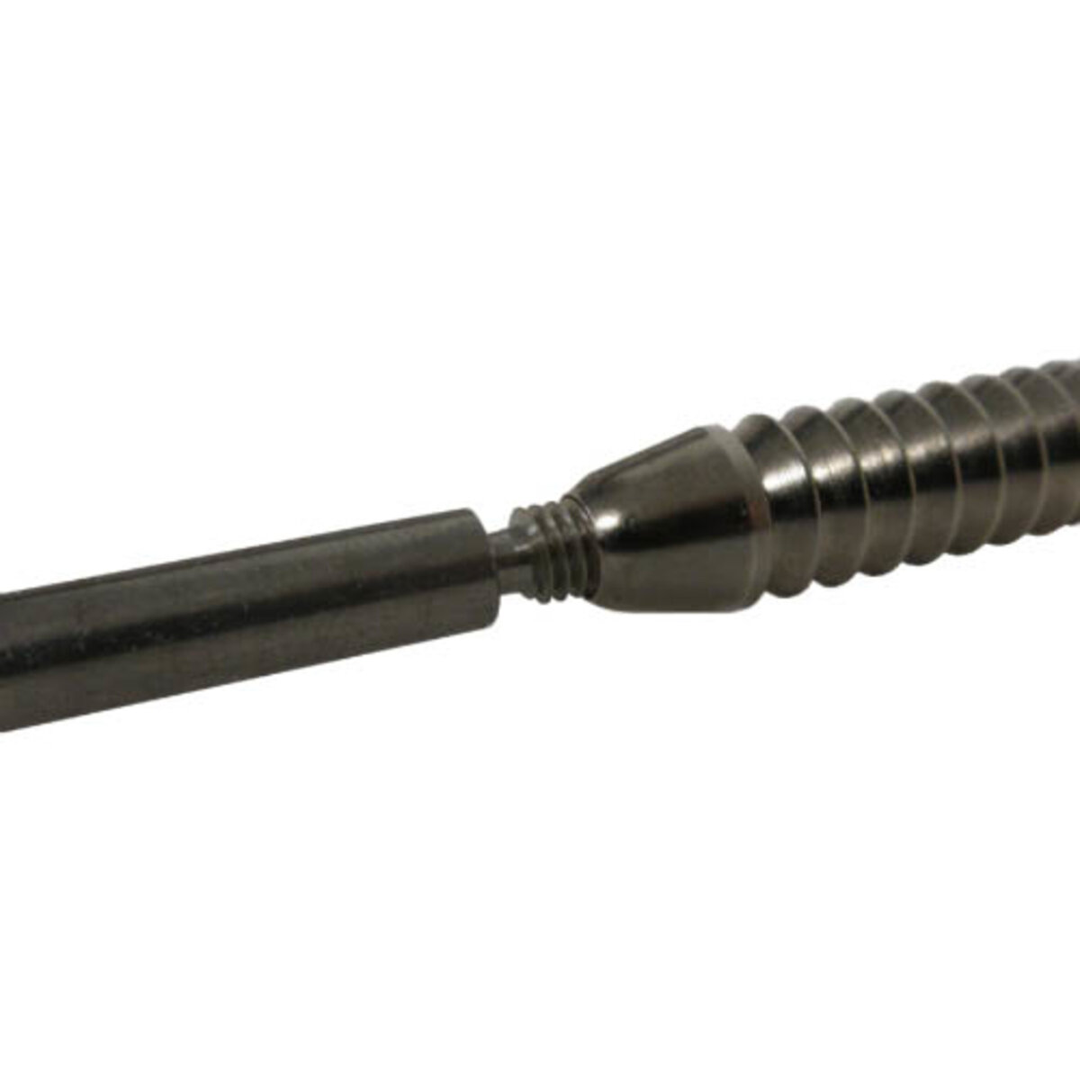 1/4 inch diameter ridged stainless steel rod, 9-3/4 inch length, used for assisting in pin engagement. Install by screwing the rod into the threaded plunger pin.