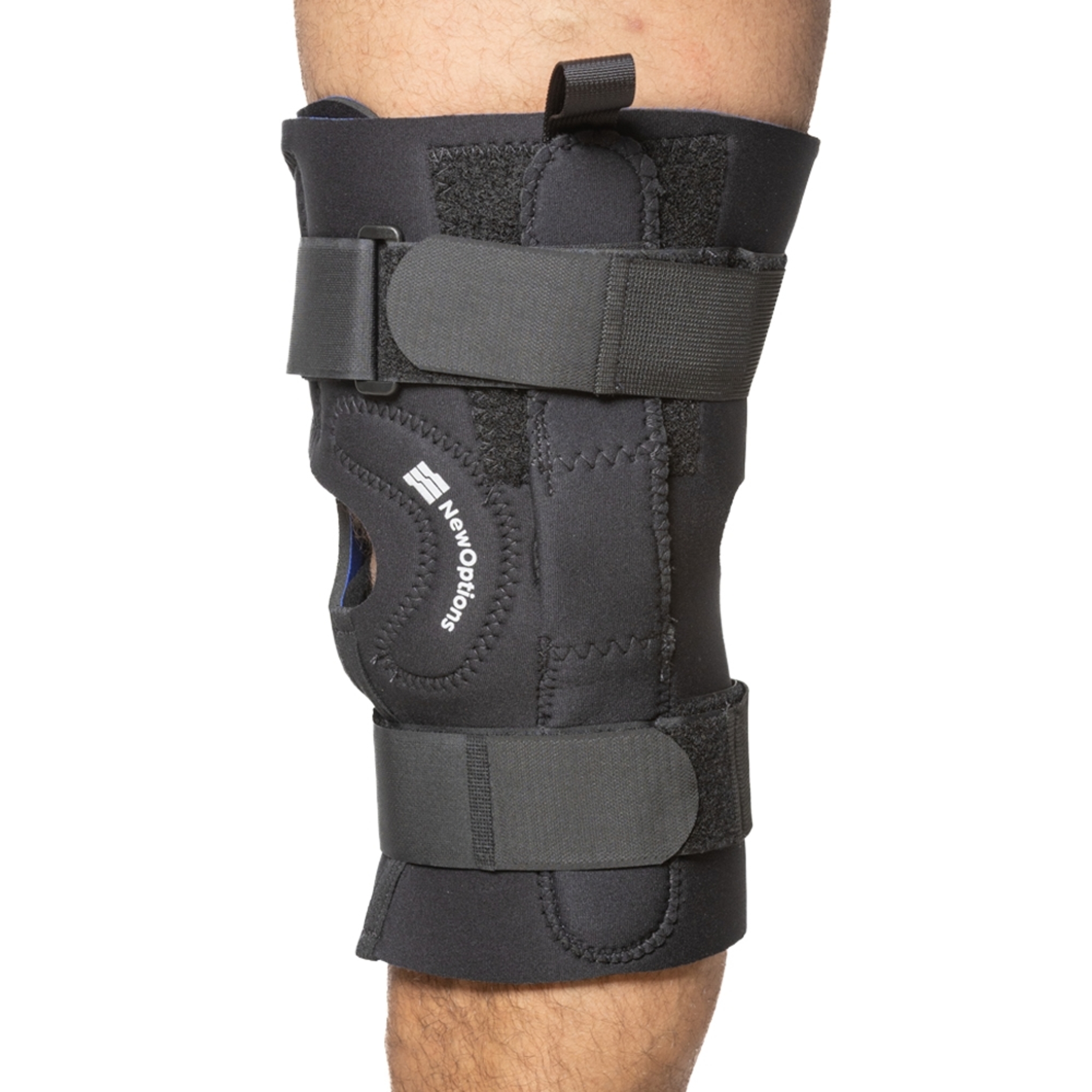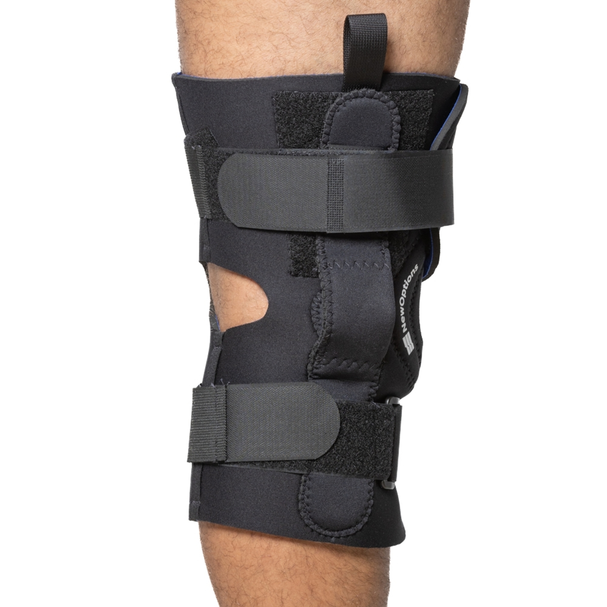 - Unique slip on brace where the top opens and serves as a wrap around to accommodate patients with extra wide legs and thighs