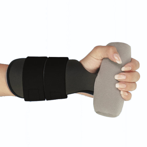 The RCAI Contour Hand Orthosis is made of heat moldable thermoplastic for patient customization. The wrist of the orthosis can be positioned to meet progressive patient needs.